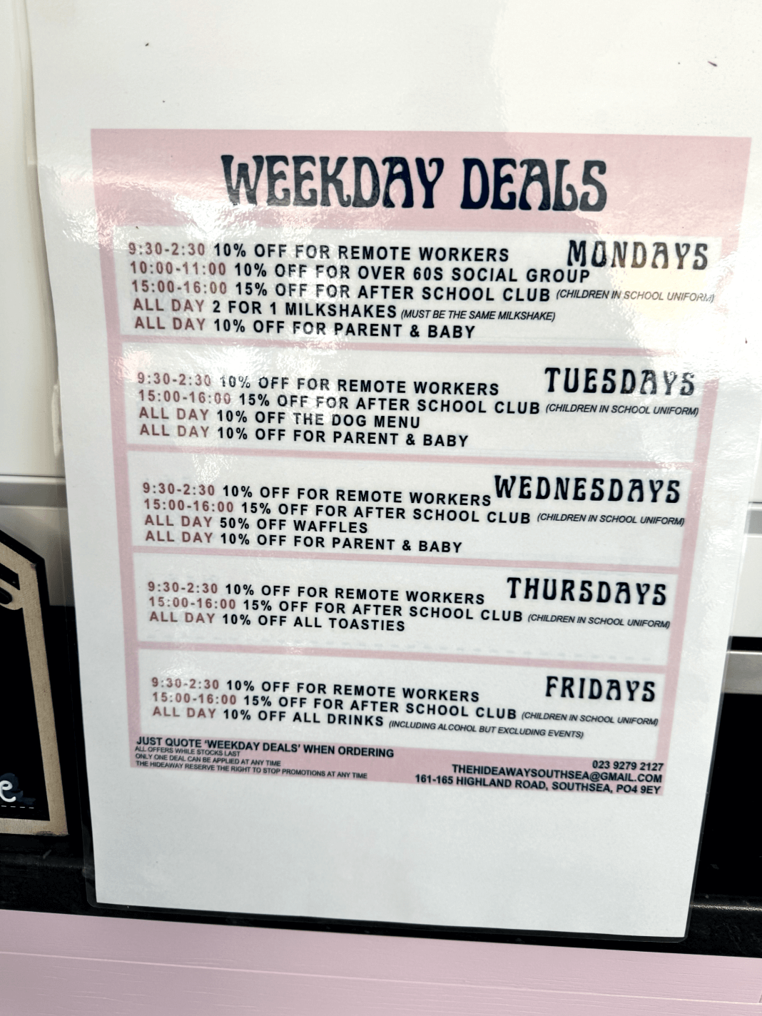 Facebook: https://www.facebook.com/thehideawaysouthsea